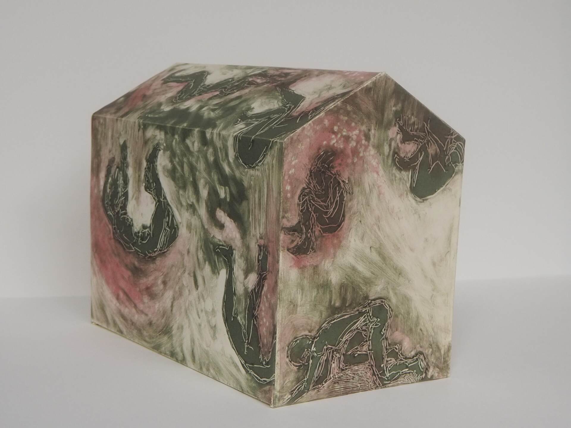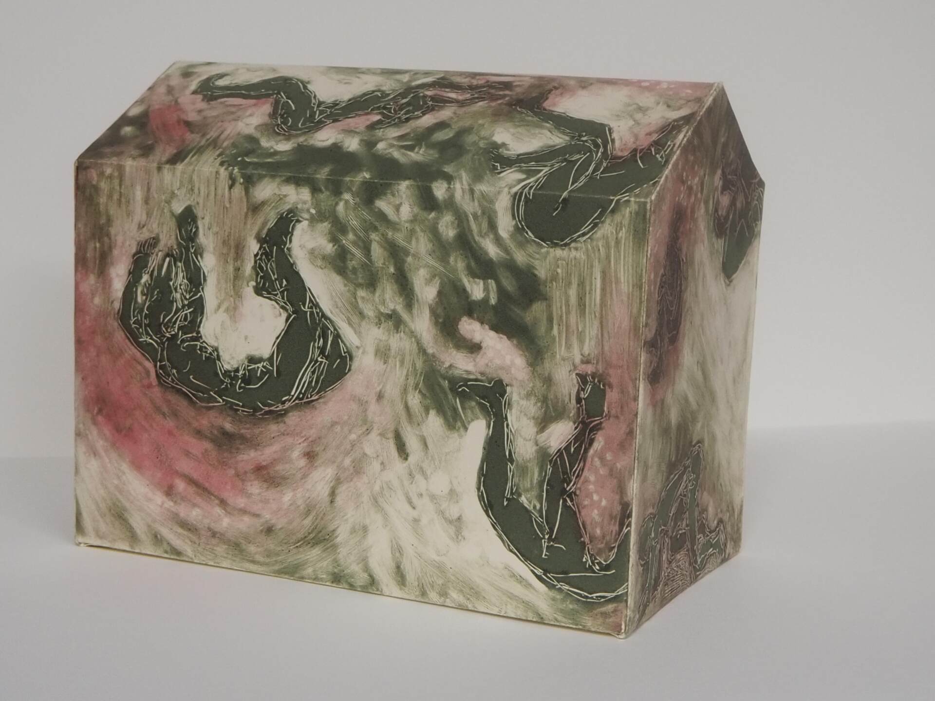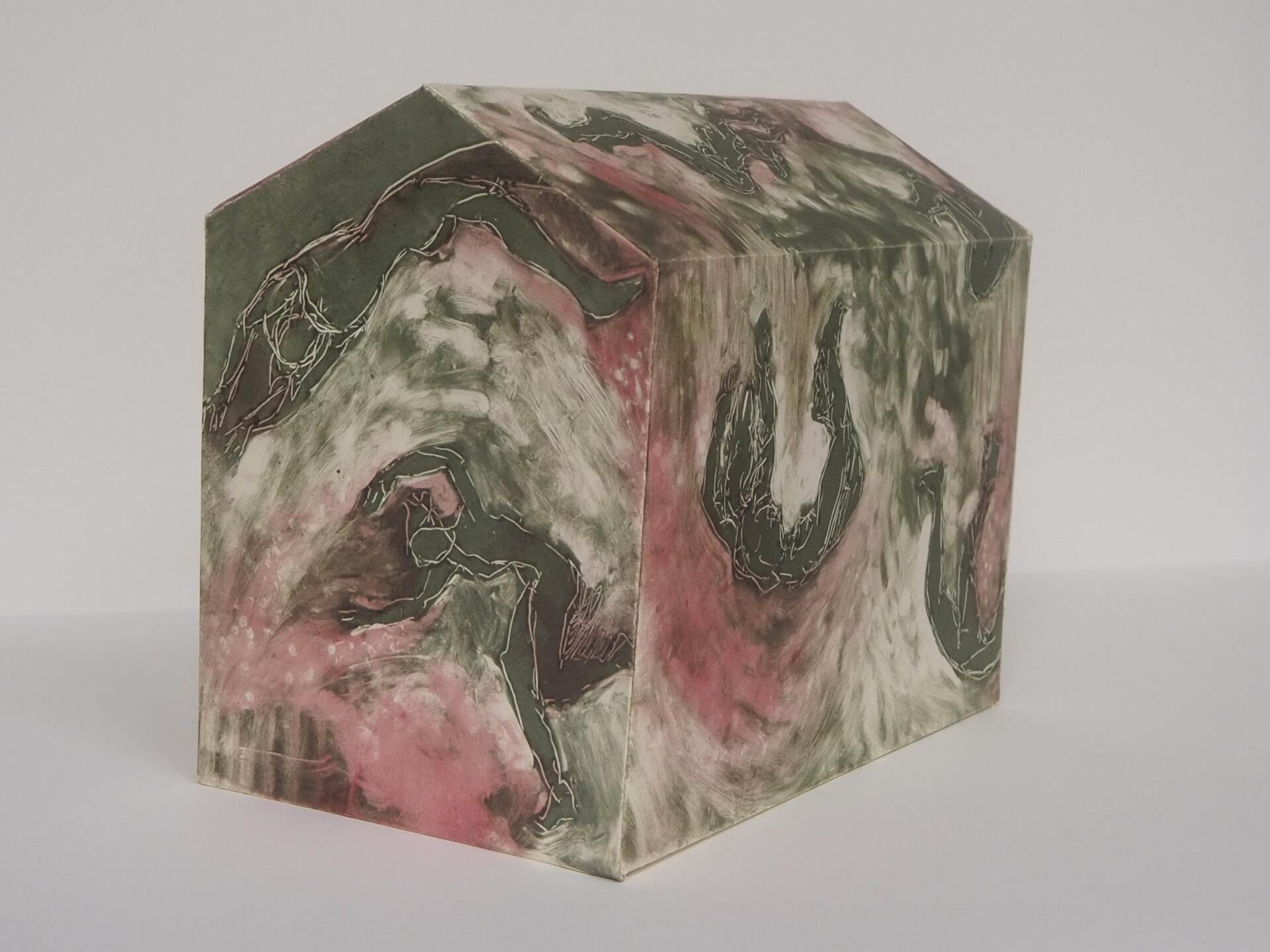 This work was made during Covid in a virtual residency from the Mornington Peninsula Shire as I was unable to attend a residency at Point Nepean. I was exploring forming my monotypes into three dimensions and was inspired by the sensation of falling without control and the strange times we were living in.